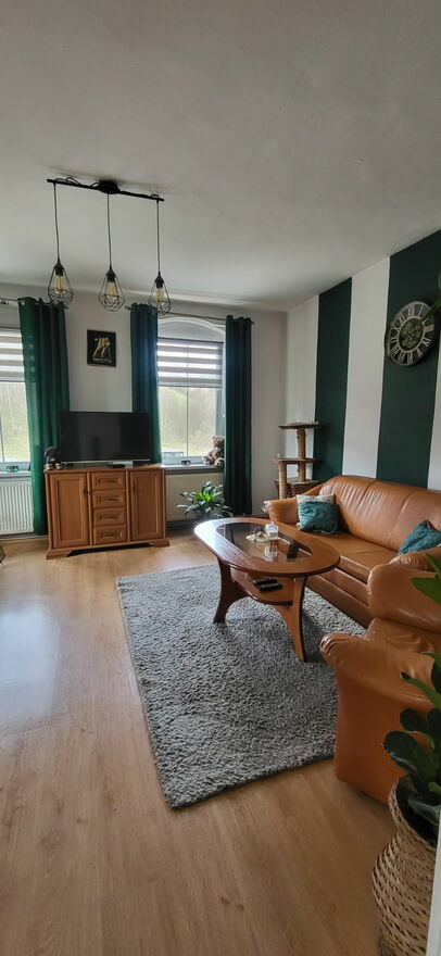 Na sprzedaż mieszkanie na drugim piętrze o powierzchni 94m2 na ulicy Głównej. Posiada 3 duże pokoje (najmniejszy 15m2), przy czym 2 z nich można podzielić na mniejsze, kuchnię, przedpokój, kotłownię z piecem na ekogroszek/drewno i łazienkę z wydzielonym kantorkiem. Najmniejszy pokój o pow. 15m2 wymaga remontu. Do mieszkania należy 1 komórka zewnętrzna, jedna na półpiętrze oraz piwnica. W bloku niedawno zostało zamontowane przyłącze światłowodowe, istnieje możliwość podpięcia do niego mieszkania.Mieszkanie jest jasne i przestronne, blok i okolica bardzo spokojne.